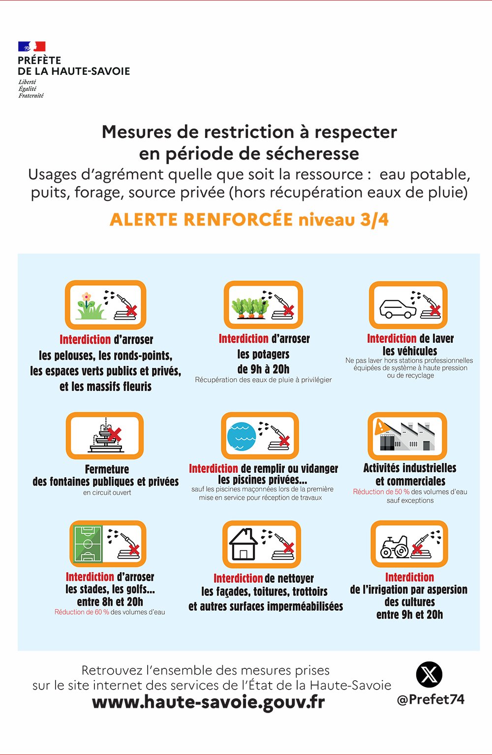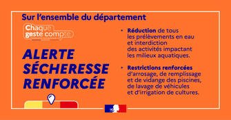 En conséquence, à compter du mercredi 20 août, l'ensemble du département est placé en état d’alerte renforcée au titre de la sécheresse (niveau 3/4).