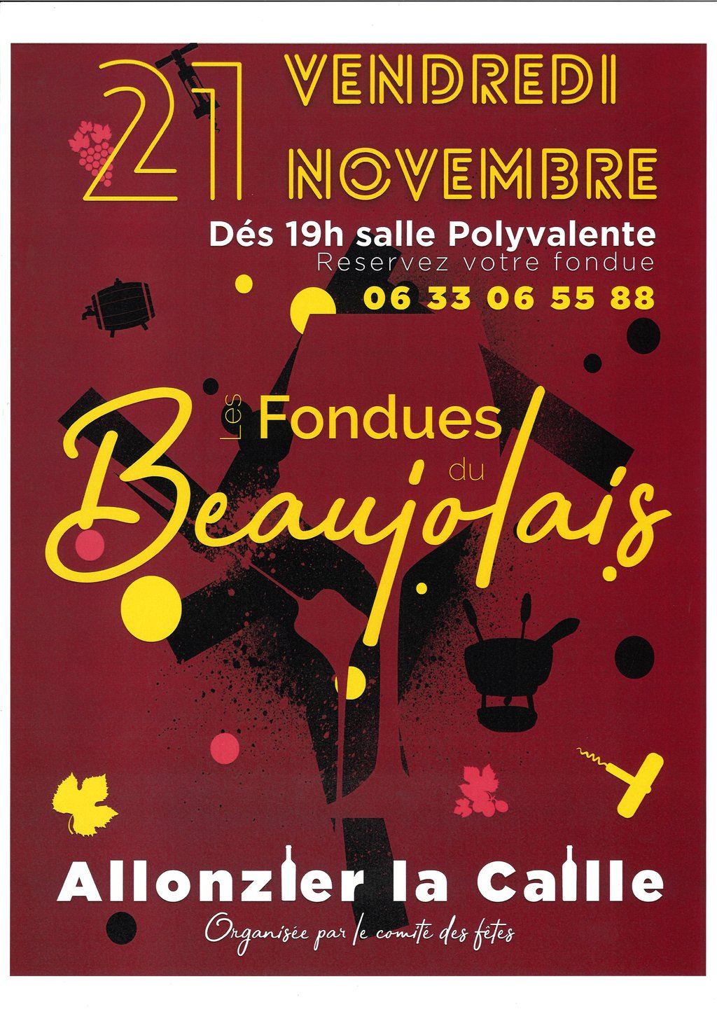 Le comité des fêtes vous attend le vendredi 21 novembre pour déguster une fondue avec le Beaujolais nouveau !